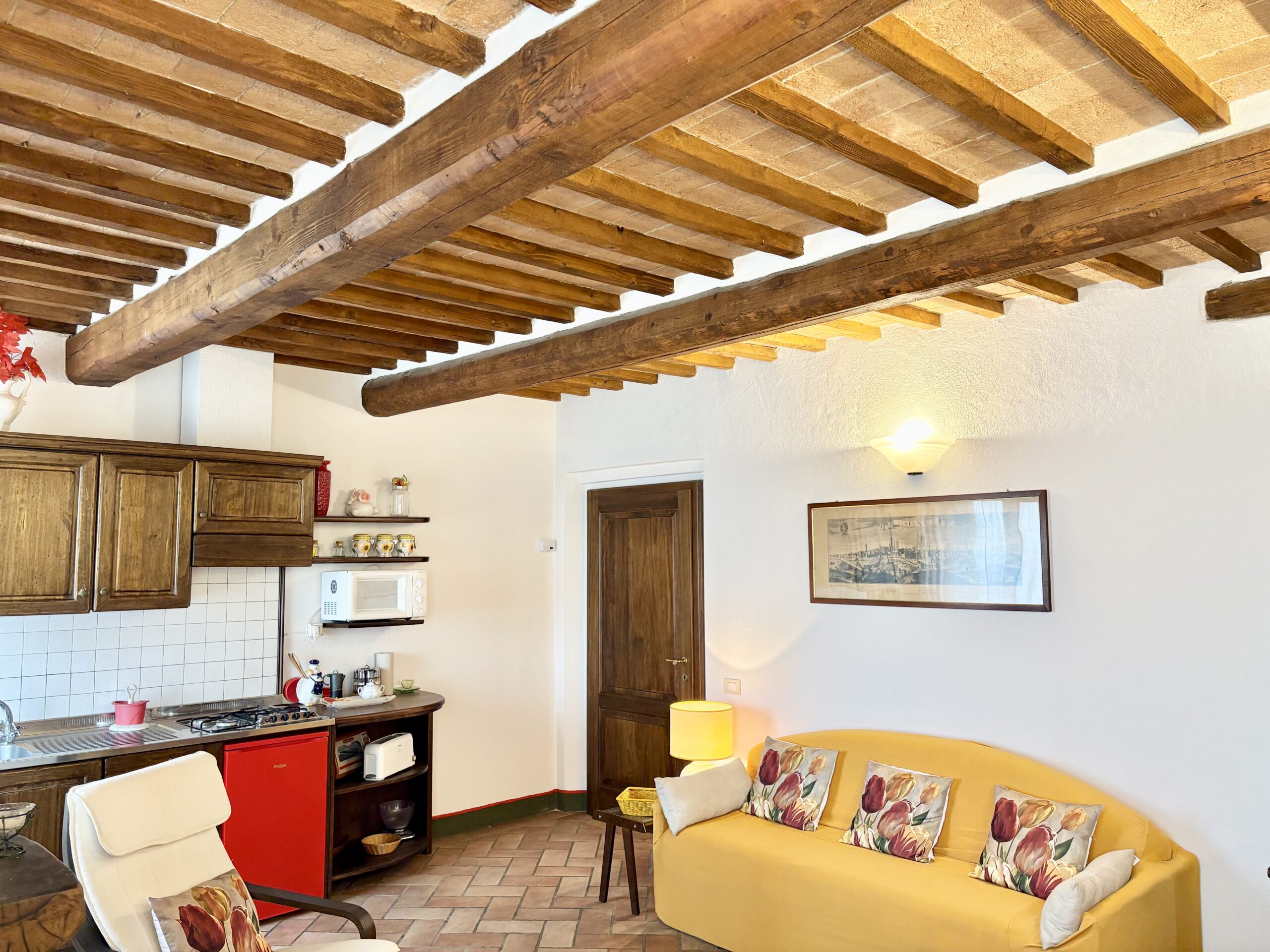 A charming retreat in the heart of San Quirico d’Orcia. An elegant and spacious apartment designed to accommodate up to four guests in an atmosphere of refined comfort.