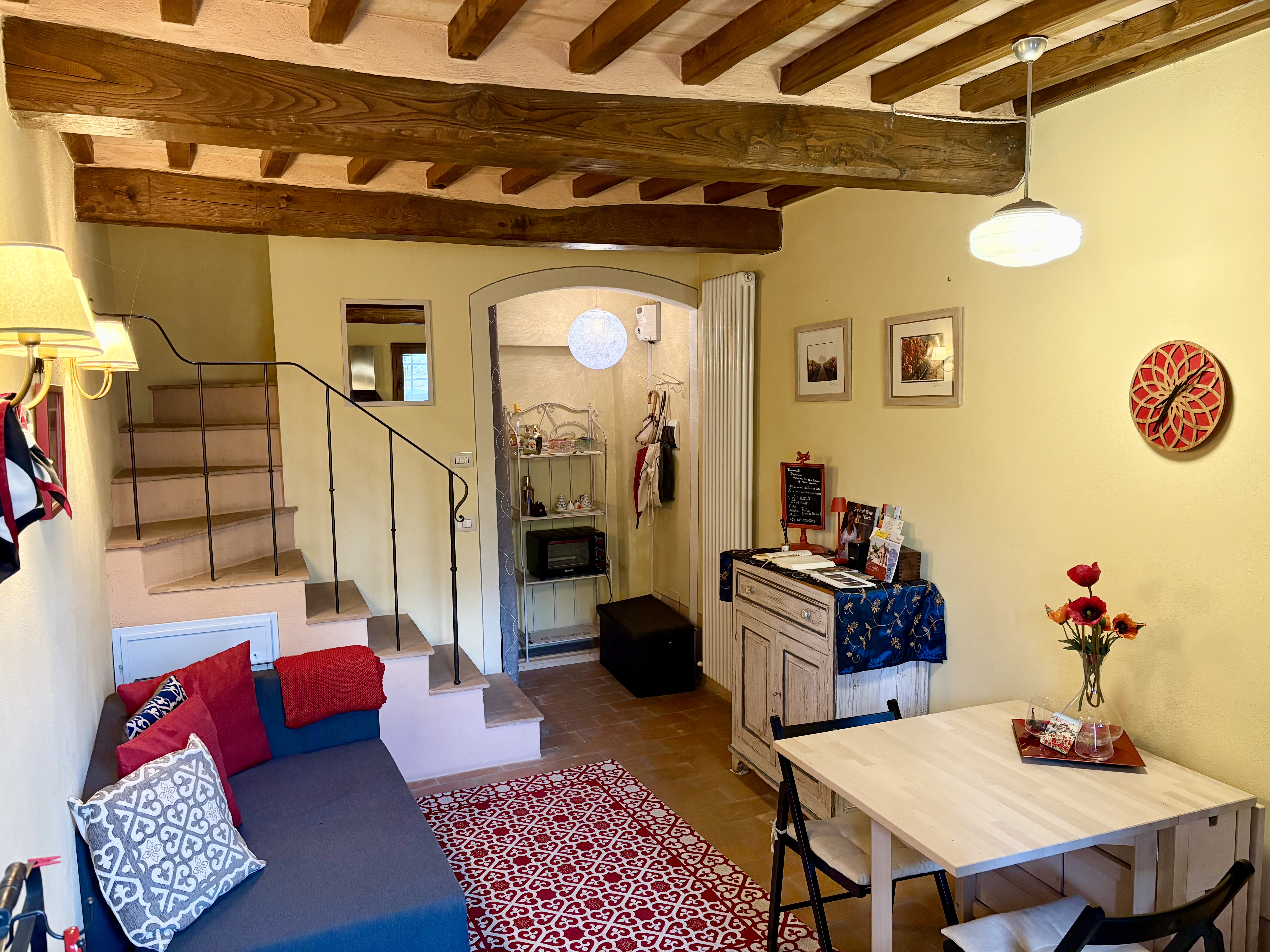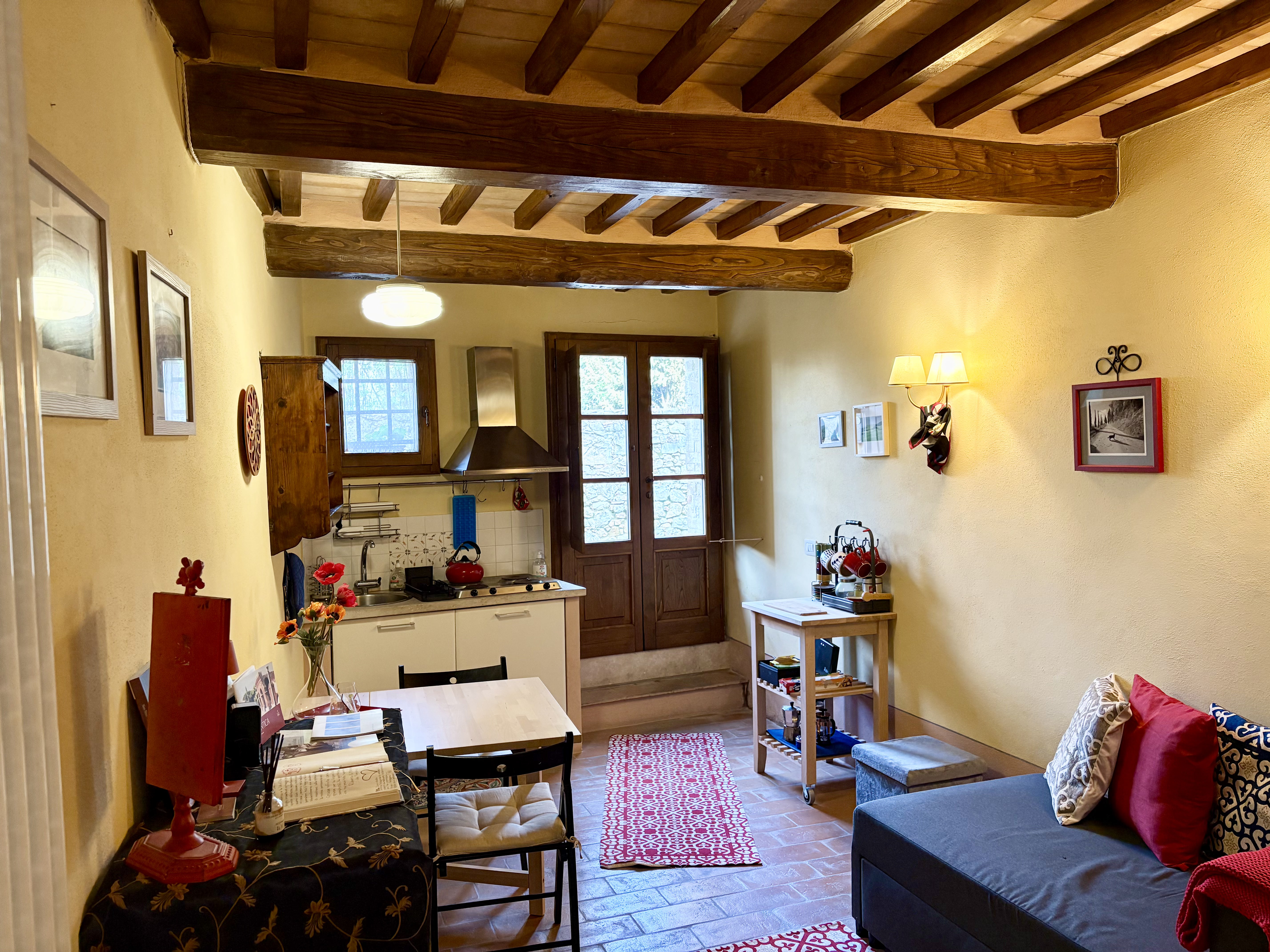 A charming retreat in the heart of San Quirico d’Orcia. An elegant and spacious apartment designed to accommodate up to four guests in an atmosphere of refined comfort.